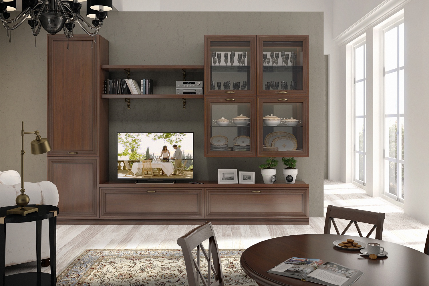 - Отделка фасадов выполнена испанским акриловым лаком и патиной (эффект состаренного дерева);