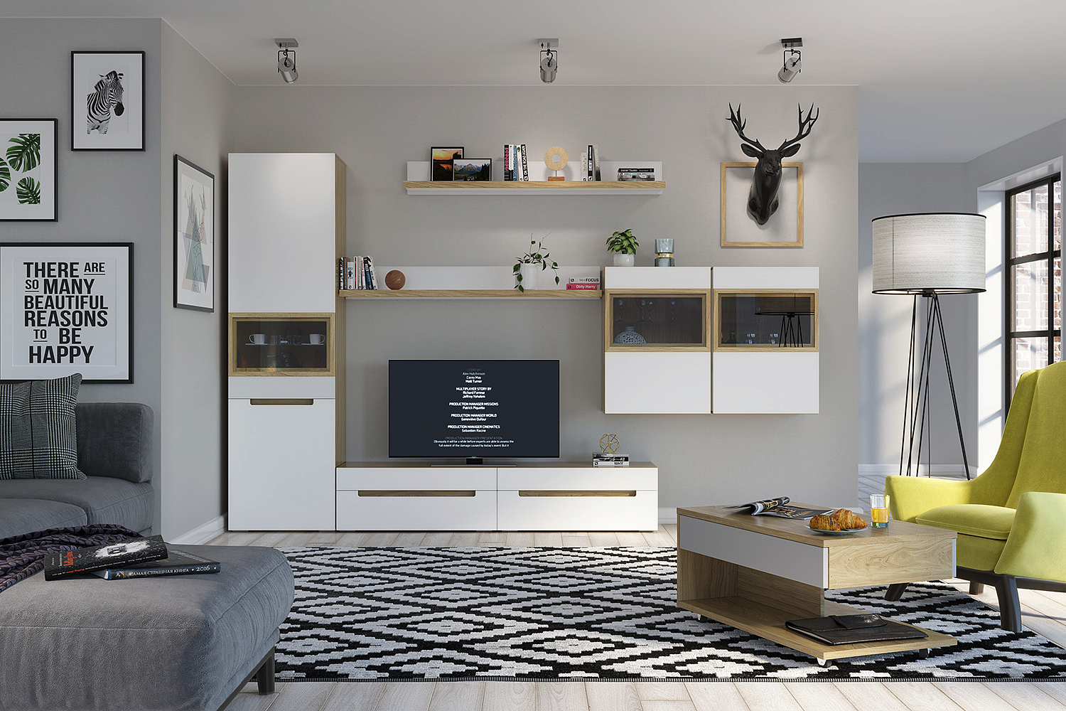 – описание: цвет швейцарский вяз, белый, размер 213.2x60.1x41.6 см, стиль современный, минимализм, назначение для гостиной.