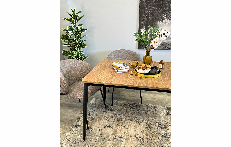 В столе используются уникальные дизайнерские опоры из металла. Тонкие, очень прочные, они дают достаточную ширину для того, чтобы поставить 2 больших стула по широкой стороне стола, и обеспечивают столу идеальную устойчивость