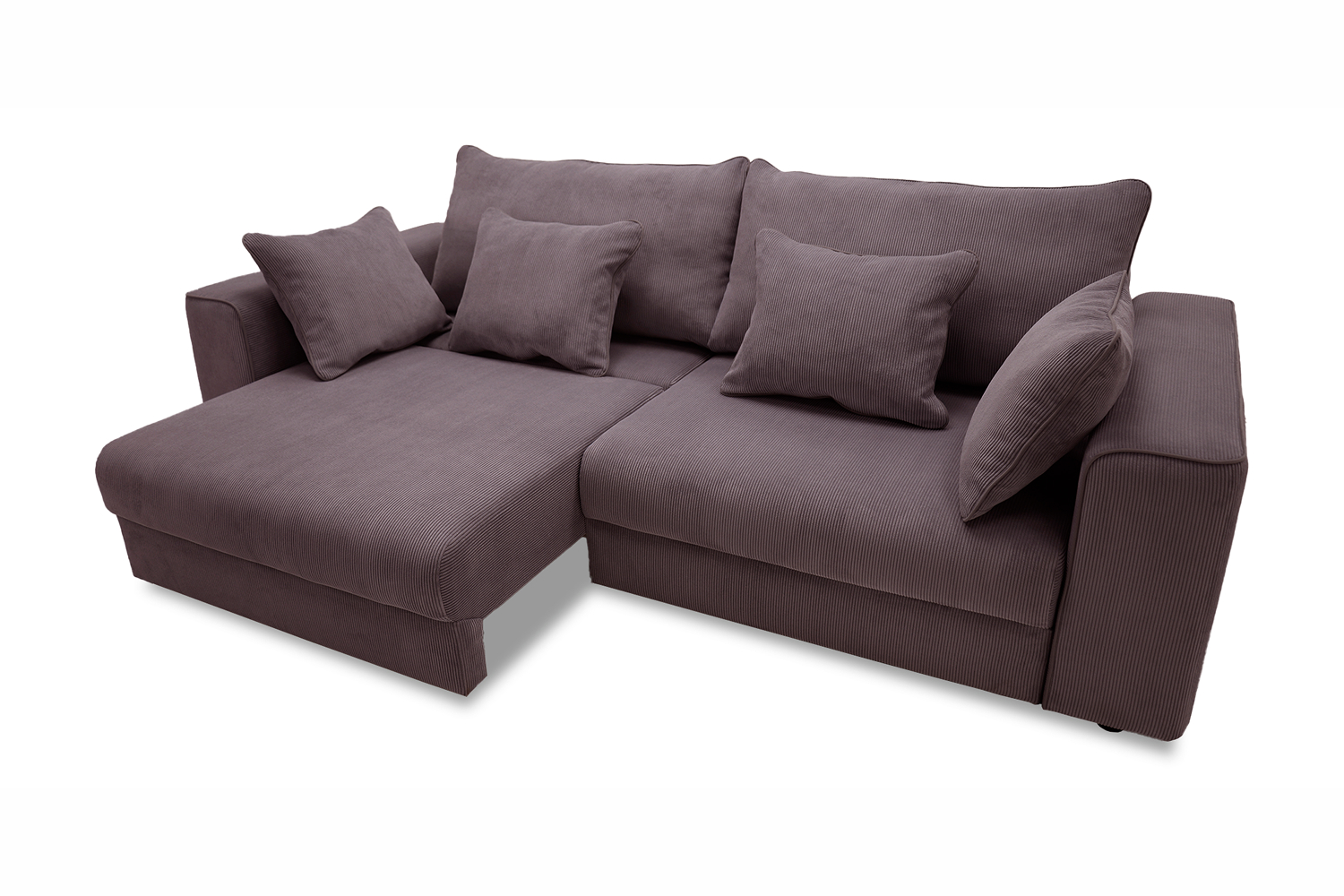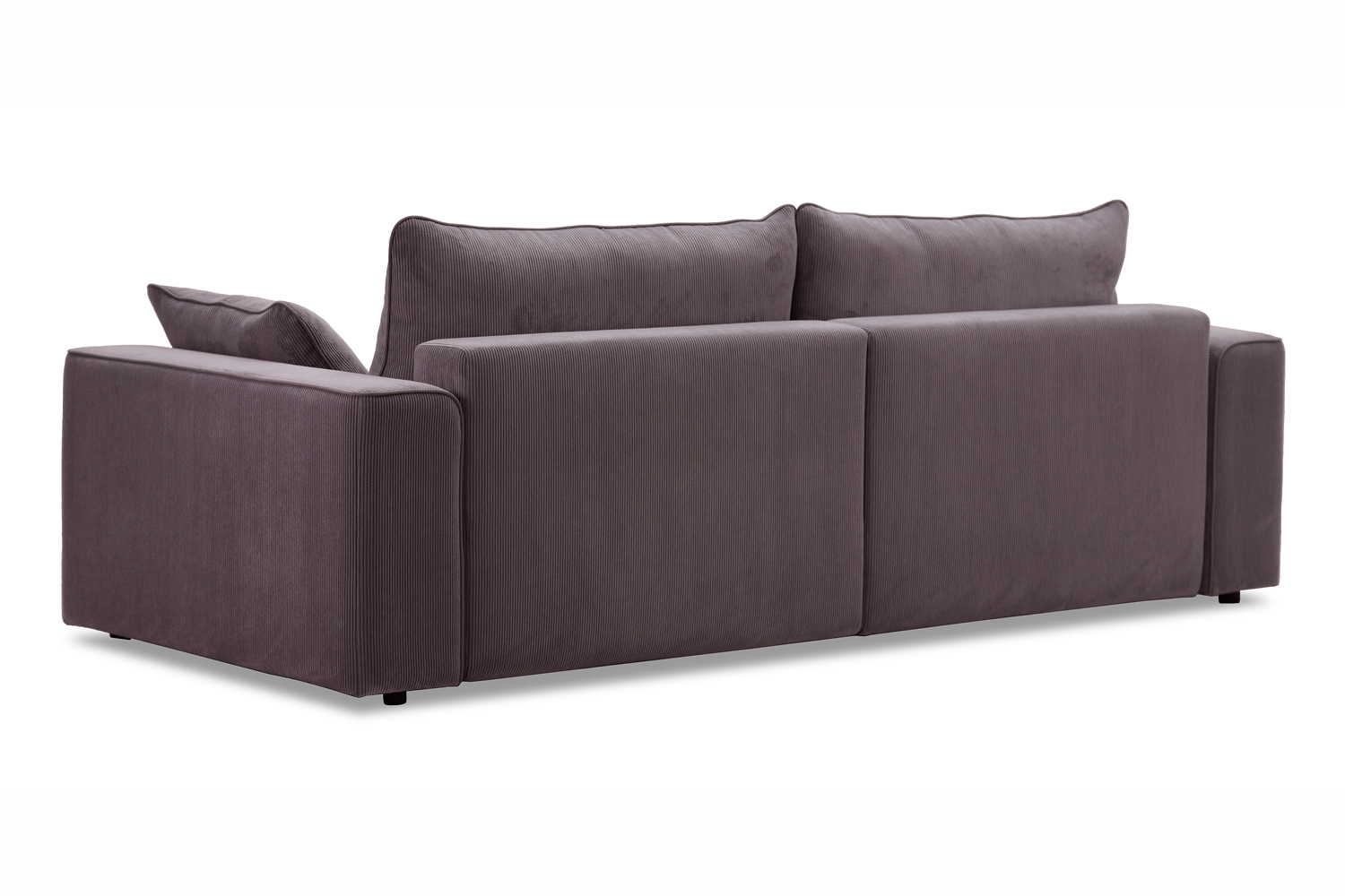 Диван выполнен в современном стиле, который будет гармонично смотреться в любом интерьере. Обивка из велюра c вертикальной текстурой актуального серого оттенка приятна на ощупь и легко чистится.
